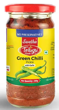 Telugu Foods Green Chilli Pickle With Garlic 300g